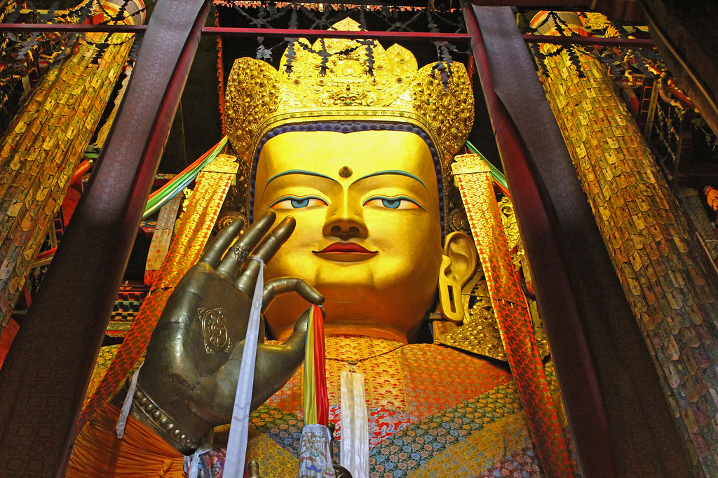 - Vizitam grandioasa manastire Tashilhunpo, resedinta lui Panchen Lama, unde se afla cea mai mare statuie de bronz a lui Buddha Maitreya din lume, placata cu 200 kg de aur.
