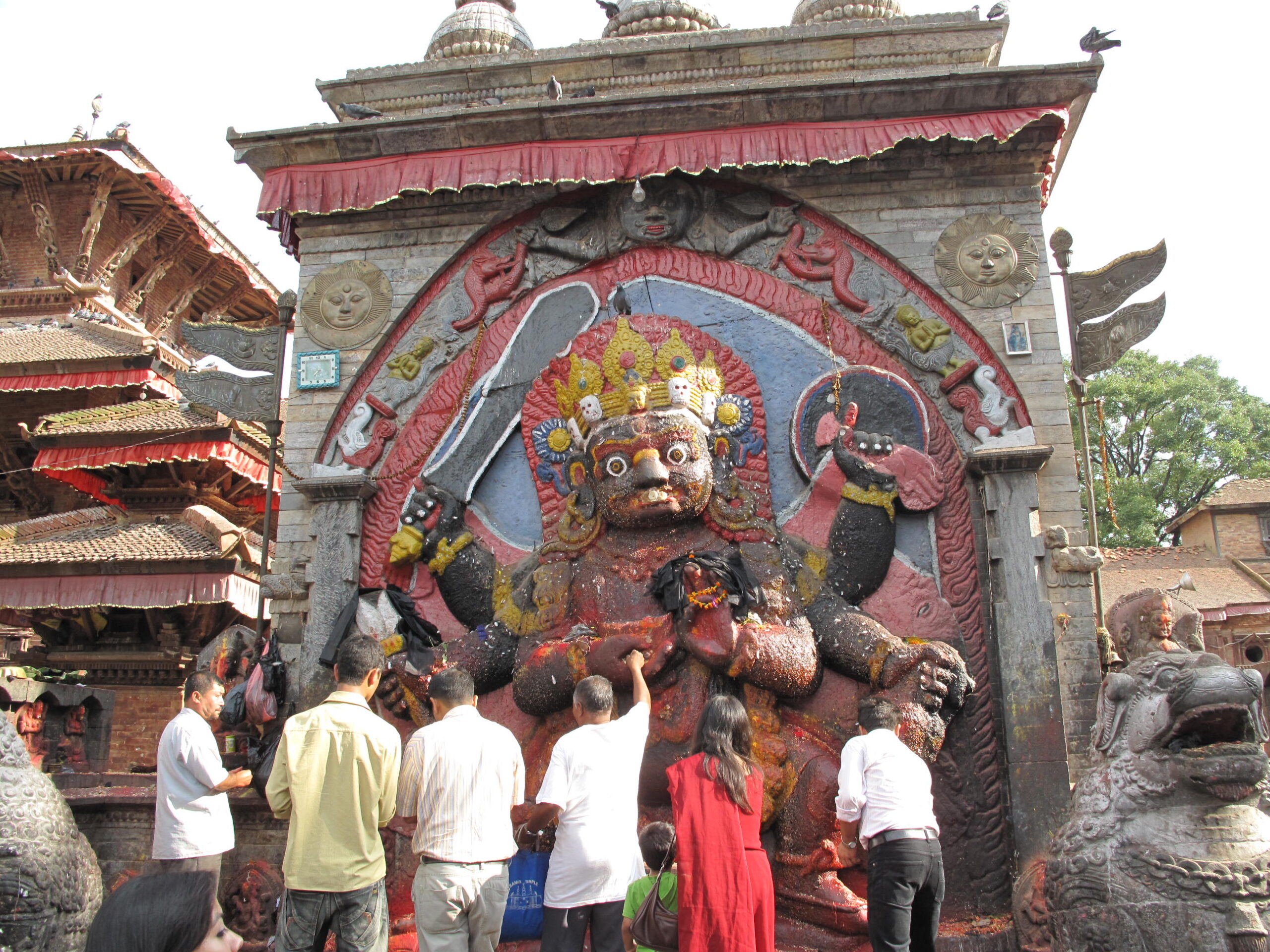 si ne vom opri in fata impresionantei statui Kala Bhairav, zeitatea feroce sculptata intr-un singur bloc de piatra.