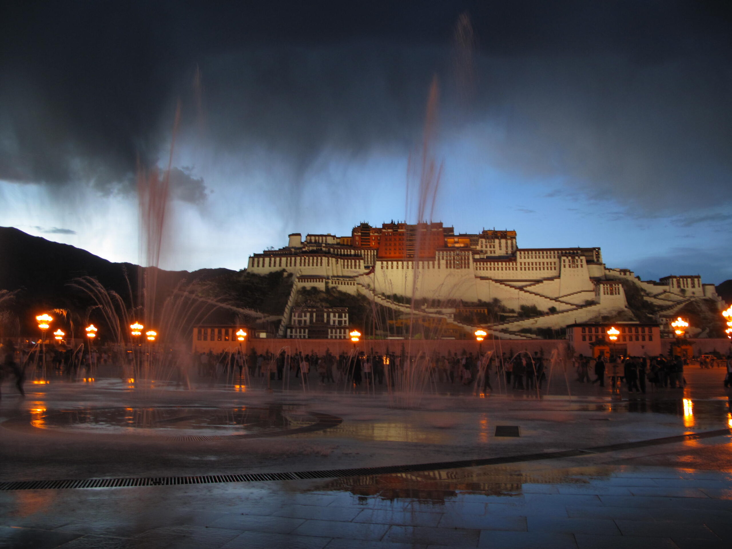 - seara mergem spre piata din fata Palatului Potala pentru a asista la spectacolul Singing Fountains. Este un contrast fascinant sa vezi jocurile de apa si lumini sincronizate pe muzica, avand pe fundal muntele sacru și palatul iluminat, locul unde misticismul tibetan intalneste tehnologia moderna