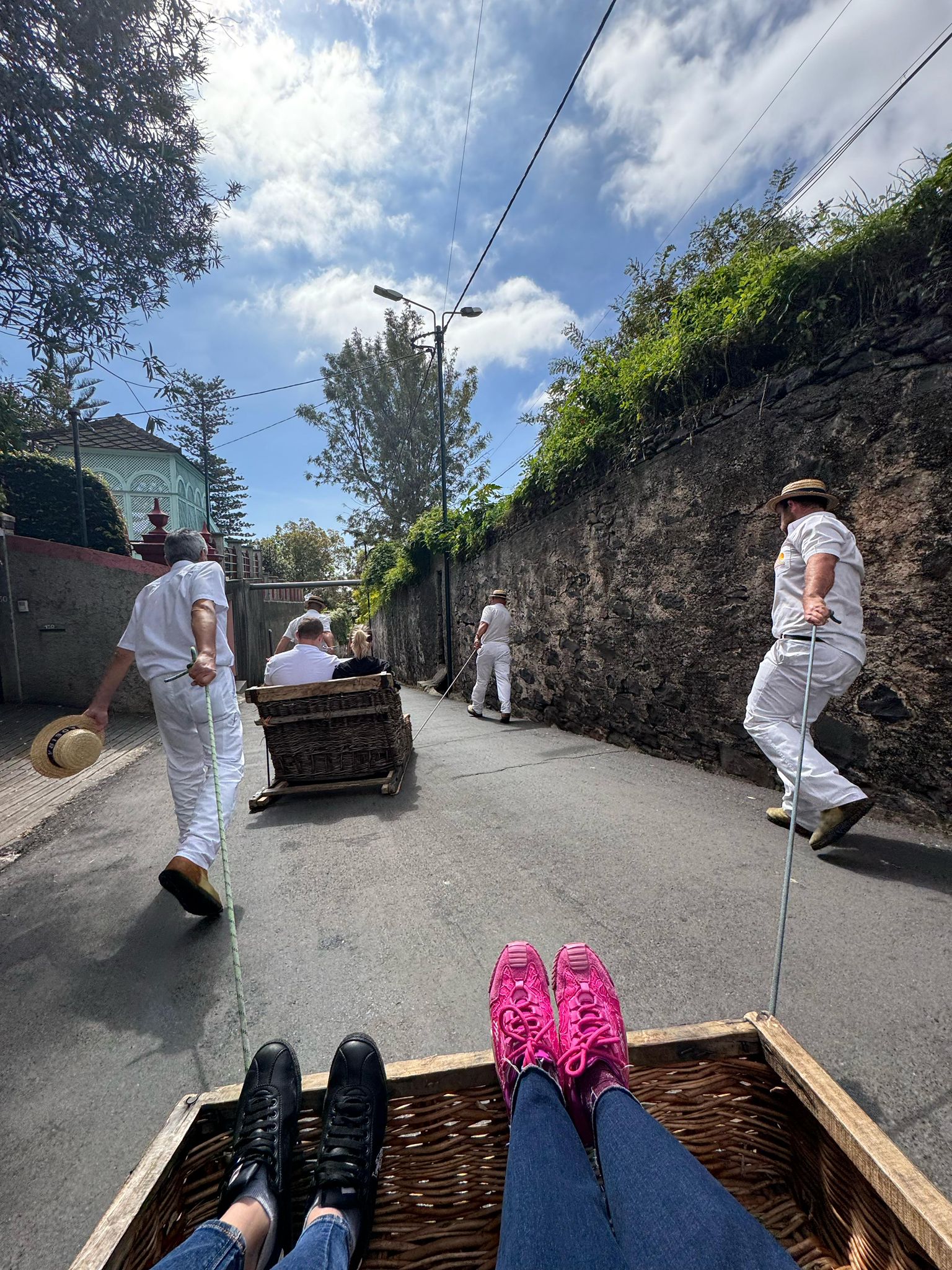 - Vom continua cu Monte, un sat aflat pe varful unui deal, deasupra orasului Funchal. Optional, vom experimenta o coborare traditionala de pe Monte, pe tobogan. Mai exact, vom cobori dealul pana la Livramento cu o „sanie” manevrata de doi carausi. Sania arata ca un cos in care se pot aseza doi adulti si se deplaseaza pe o distanta de aprox. 2 km, atingand viteze mari, pana la 50km/h. Este un mod distractiv de coborare, solicitat intens de turisti.