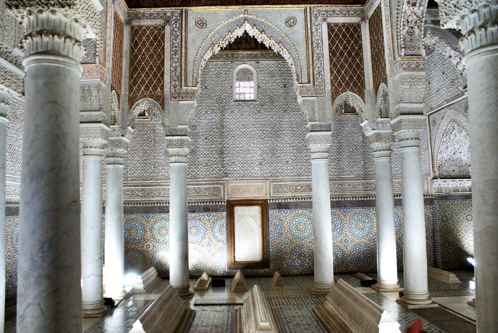 - Les Tombes – Mormintele saadiene, dateaza din timpul sultanului Ahmad al-Mansur (1578-1603) din dinastia saadiana; abandonate timp de secole, au fost redescoperite in 1917 prin fotografiere aeriana si au fost renovate, fiind o atractie majora pentru vizitatorii Marrakech-ului datorita frumusetii decorului lor; Mausoleul cuprinde mormintele a aproximativ 60 de membri ai dinastiei Saadi care isi au originea in valea raului Draa